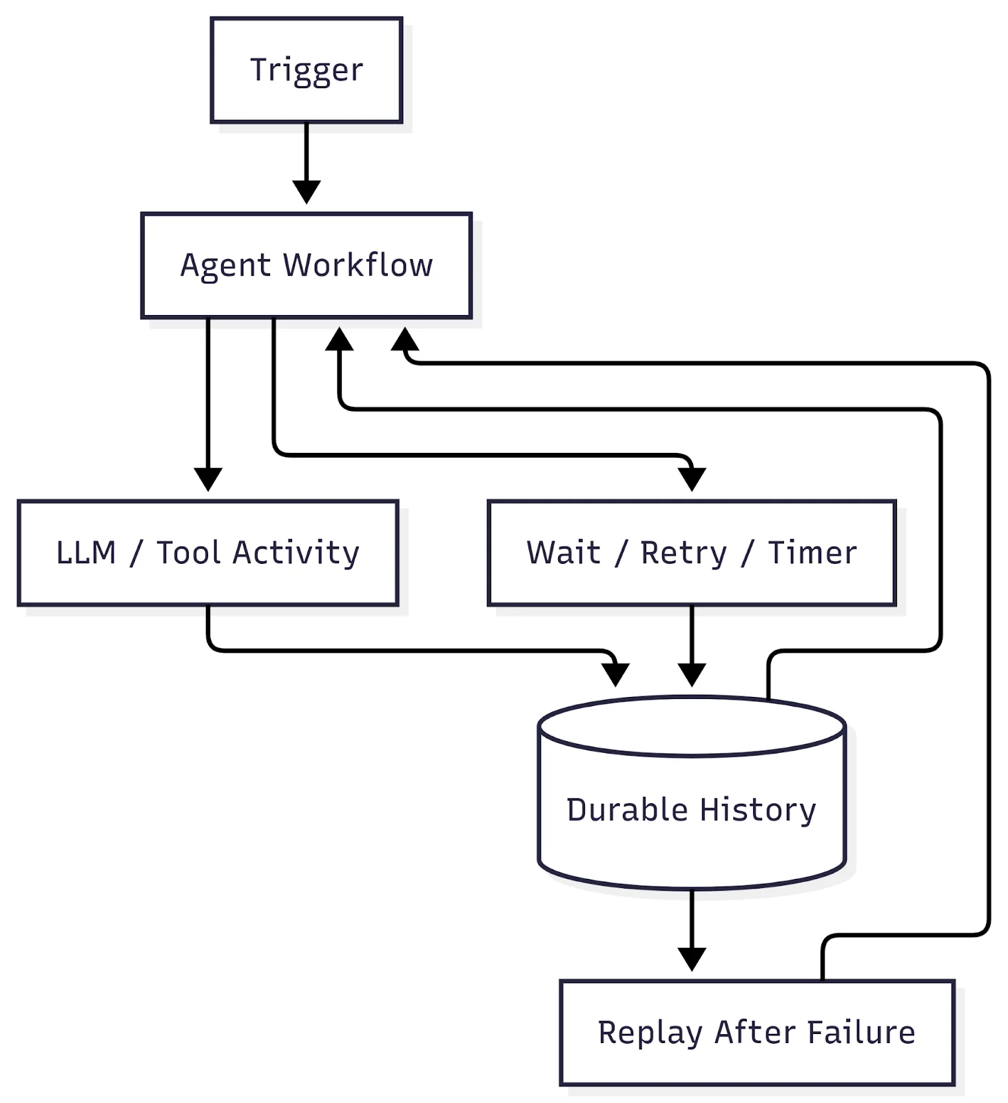 Most agent implementations rely on logs and metrics to reconstruct behavior after the fact. That approach breaks down for long-running agents that branch, retry, wait, and interact with multiple external systems over time. Logs are incomplete, reordered, or missing. In-memory state is gone. You are left guessing which reasoning step or tool call caused the failure.