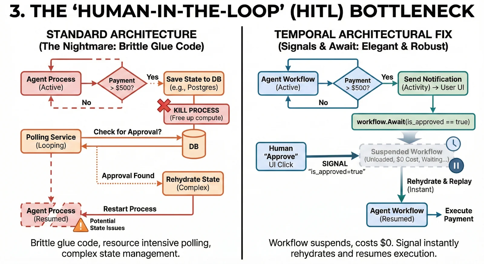 This is where standard orchestration fails, and where Temporal becomes the only viable architecture for production-grade agents.